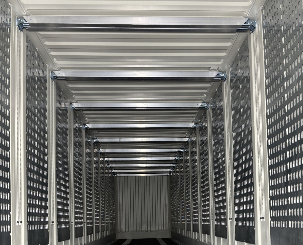 Caja móvil de 45 pies con gran capacidad de carga útil. Respeta la infraestructura de los contenedores de 40 pies para facilitar el transporte y los movimientos. [easy-image-collage id=10726]